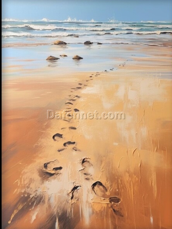 100% Hand - Painted Oil Painting: Beach Footprints and Ocean Waves in Textured Abstract Style - Prime Wall Decor for Modern Living Rooms