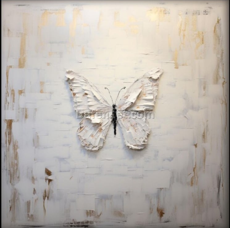 100% Handmade Textured Oil Painting of White Elegant Butterflies with Golden Hues - Abstract Wall Art for Modern Living Room