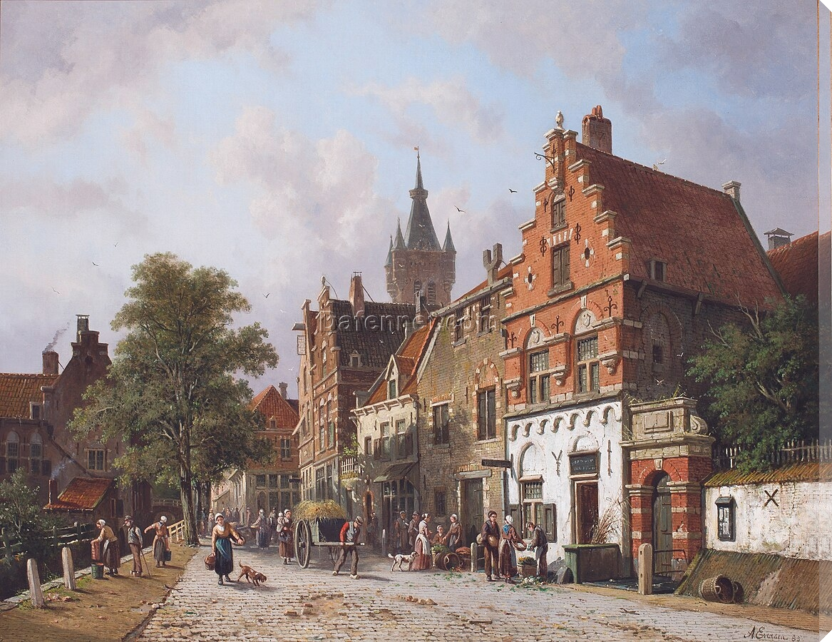 Bring 19th-century Dutch city life into your space with a faithful, hand-painted recreation of Adrianus Eversen’s 1885 view of Delft and the Prinsenhof. Crafted by senior artists at Da Fen Village Oil Painting Studio, this piece captures Eversen’s crisp architecture, lively street figures, and luminous northern light—perfect for classic interiors, galleries, and refined hospitality spaces.