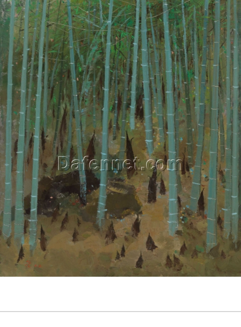 Bamboo Shoots in Spring – Wu Guanzhong Inspired Chinese Oil Painting on Canvas, Large Wall Art