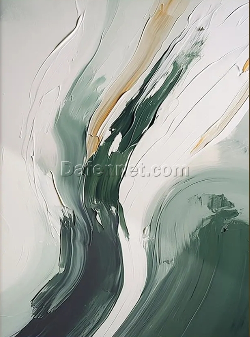 Custom Green and White Abstract Painting - Minimalist Wall Art with Green, White, and Brown Textured Design for Modern Living Room and Hotel Decoration | Dafen Oil Painting Village Studio