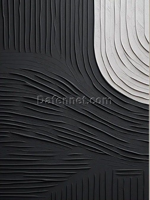 Custom Large Black Abstract Oil Painting on Canvas – Wabi-Sabi Wall Art with White Textured Wall Design for Modern Living Room and Hotel Decoration | Dafen Oil Painting Village Studio