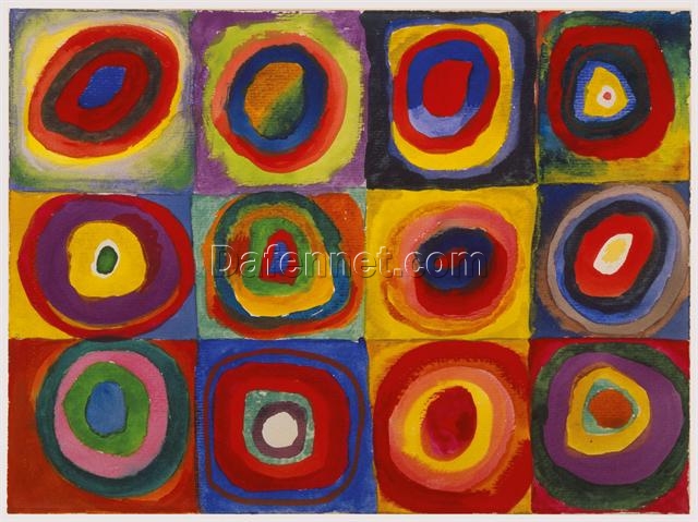 Explore the beauty of abstract art with Color Study: Squares with Concentric Circles by Wassily Kandinsky (c. 1913). Known for its striking use of color and geometry, this piece can be custom reproduced in your preferred size and framing style, bringing a touch of modern art to your home.