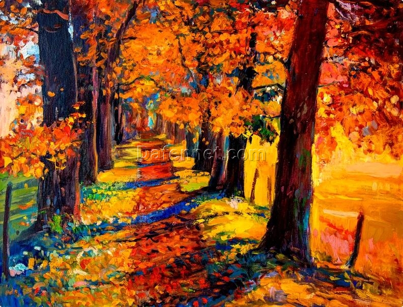 Custom Oil Painting of Golden Autumn Forest with Pathway - Handcrafted and Personalized
