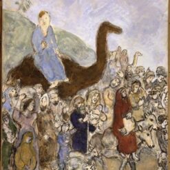 Marc Chagall Jacob Leaves His Country and His Family to Go to Egypt – Hand-Painted Religious Artwork, Reproduction in Gouache and Oil on Paper by Da Fen Oil Painting Village Studio
