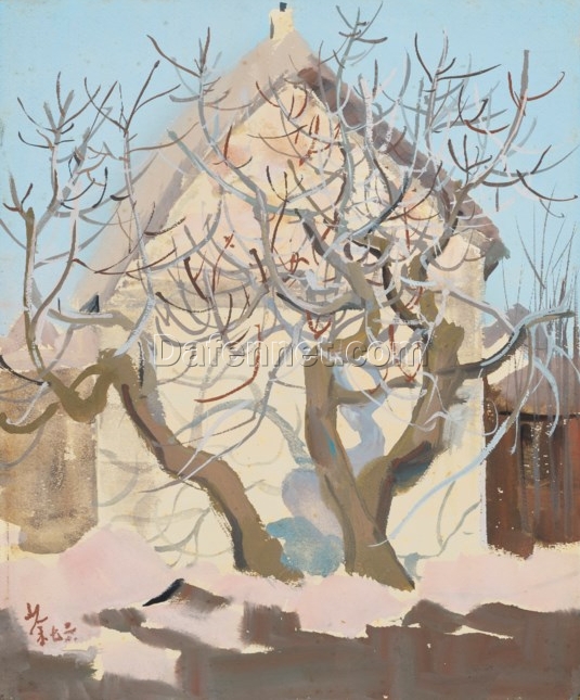Fig Tree in Winter – Wu Guanzhong Inspired Chinese Landscape Oil Painting | DaFen Studio Custom Wall Art
