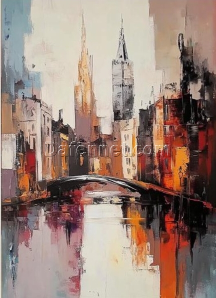 Hand-Painted Abstract Cityscape Oil Painting – Textured Urban Landscape Art for Modern Entryway and Dining Room
