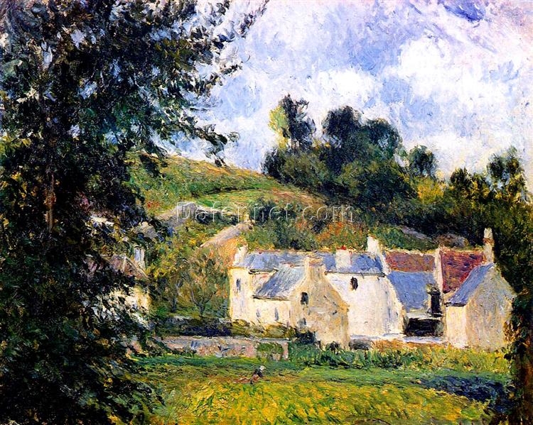 Houses of l'Hermitage, Pontoise" – 1879 Oil on Canvas by Camille Pissarro, Impressionist Landscape