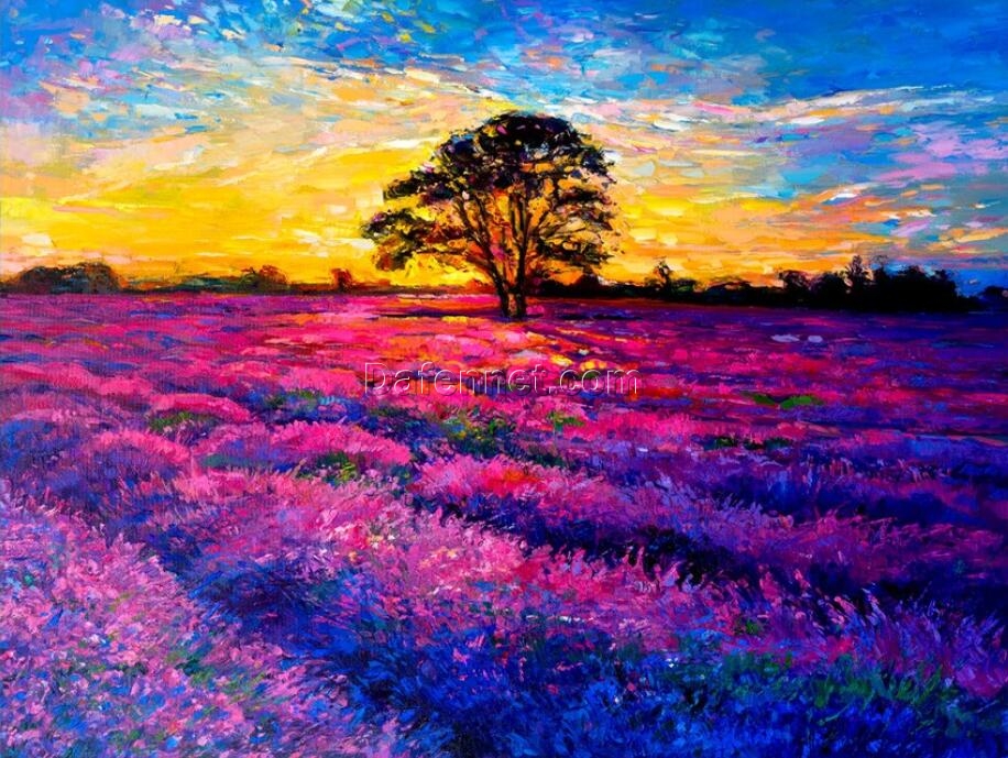 Lavender Fields Forever: Large Original Landscape Oil Painting on Canvas for Wall Art Decor