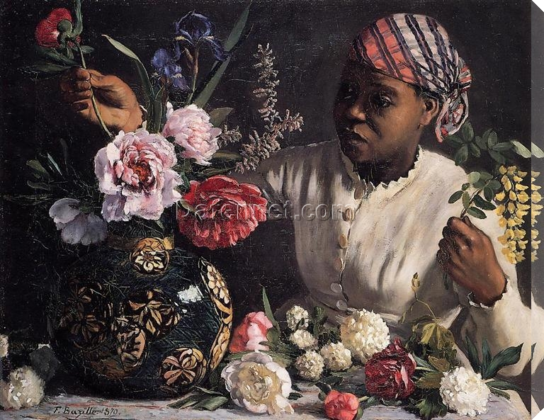 Negress with Peonies Oil Painting Reproduction – Frederic Bazille 1870 | Hand-Painted French Impressionist Portrait from Dafen Village Studio