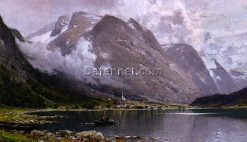 Stunning Dafen Village Reproduction of Walter Moras’ ‘Hochgebirgslandschaft mit spiegelndem See’ – 39×64.5 cm Oil on Canvas for Interior Decorators