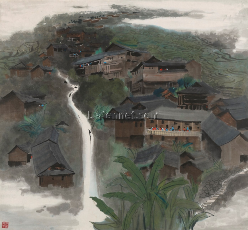 Wu Guanzhong Guangxi Zhuang Village – Abstract Landscape Oil Painting for Living Room Walls