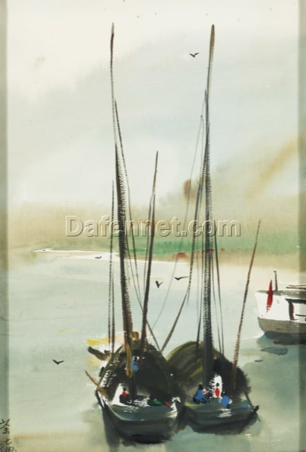 Wu Guanzhong Style Boat Painting – Chinese Abstract Landscape Wall Art on Canvas, Custom from DaFen Village